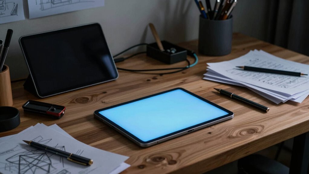 Tablets can both boost and hinder your creative thinking in workshops. They offer quick access to inspiration and collaborative tools, enhancing your ideas. However, digital distraction can easily break your focus, leading to creative limitations. If you manage notifications and stay intentional with your tasks, tablets support your creativity. But if you get sidetracked, they could hinder your deep thinking, making it harder to develop innovative concepts effectively.