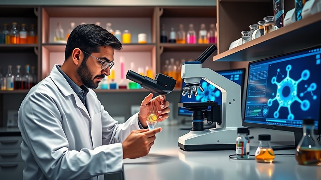 You’ll often face funding hurdles that limit your resources and slow progress, making it hard to scale your product. Regulatory barriers add complexity, requiring extensive testing and compliance, which can cause delays and increase costs. Managing these challenges demands strategic planning, persistence, and adaptability. Overcoming funding issues and regulatory hurdles is essential to successfully commercialize your innovation and bring it to market, ultimately turning your research into a viable product.
