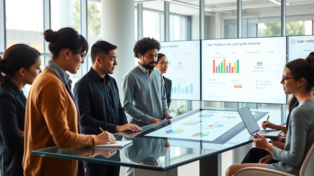 User feedback directly shapes your testing strategies by providing valuable user insights. When you analyze feedback, you identify pain points and prioritize testing areas that matter most to users. This approach helps you catch issues early, tailor tests to real-world scenarios, and improve overall quality. By continuously integrating user insights, you guarantee your testing remains relevant, customer-centric, and effective, ultimately delivering a better user experience.