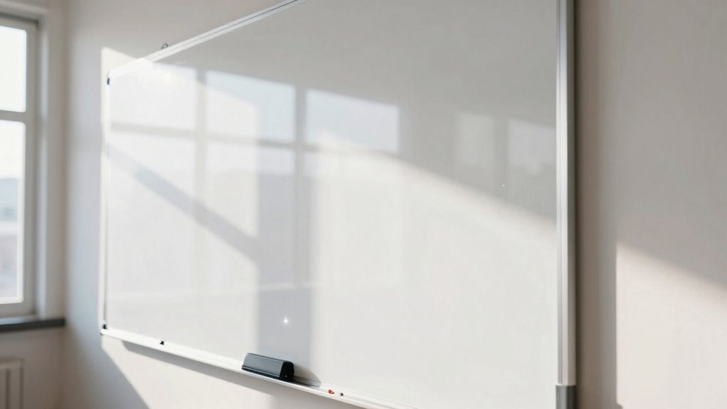 Are you wondering which whiteboard surface can best reduce glare in bright environments? The choice between matte and glossy finishes makes a big difference. Matte surfaces diffuse light, minimizing reflections and reducing glare, making them easier to see in well-lit rooms. Glossy finishes, on the other hand, reflect light directly, increasing glare and hampering visibility. When selecting a whiteboard, consider glare reduction techniques like opting for matte surfaces and using appropriate whiteboard accessories, such as anti-glare covers or filters. These accessories can further diminish reflections and improve clarity. For bright rooms, a matte finish is generally the better choice, especially if you want to avoid distractions caused by glare. Your goal should be a surface that enhances visibility and supports effective communication.