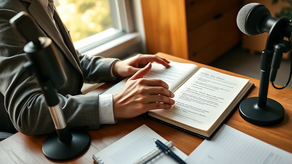 To build rapport with interviewees, focus on building trust by showing genuine interest and maintaining eye contact. Practice active listening, nodding, and providing encouraging responses to make them feel heard. Use open body language and ask friendly, non-threatening questions. Your warmth and attentiveness encourage honesty, helping interviewees relax and share more meaningful insights. Remember, establishing rapport creates a comfortable environment for honest, valuable conversations.
