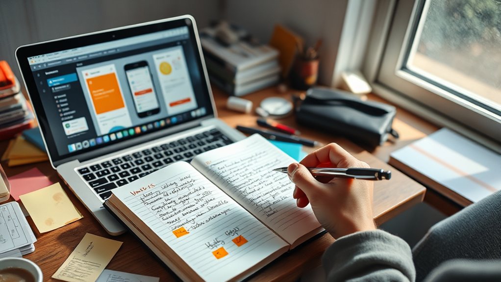 Diary studies help you observe and understand long-term user behaviors in their natural settings, providing rich, authentic insights that surveys or interviews often miss. By encouraging participants to document their experiences regularly, you gain detailed, contextual data that reveals genuine patterns and routines. Ensuring accurate, consistent entries and considering ethical security measures improve data quality and trust. To uncover how users really interact over time, focusing on effective diary techniques will guide you toward meaningful discoveries.