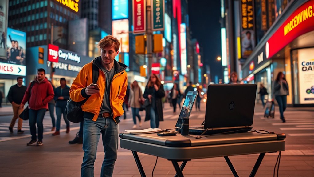 You should pick public spaces with high traffic, like busy cafes, parks, or transit stations, to maximize your reach. Look for locations where your target users naturally gather or pass through. Avoid quiet areas, as fewer people mean less feedback. Test in spots that match your user profile and are accessible, ensuring you get diverse, relevant insights quickly. High traffic public spaces are your best bet for effective guerrilla testing.
