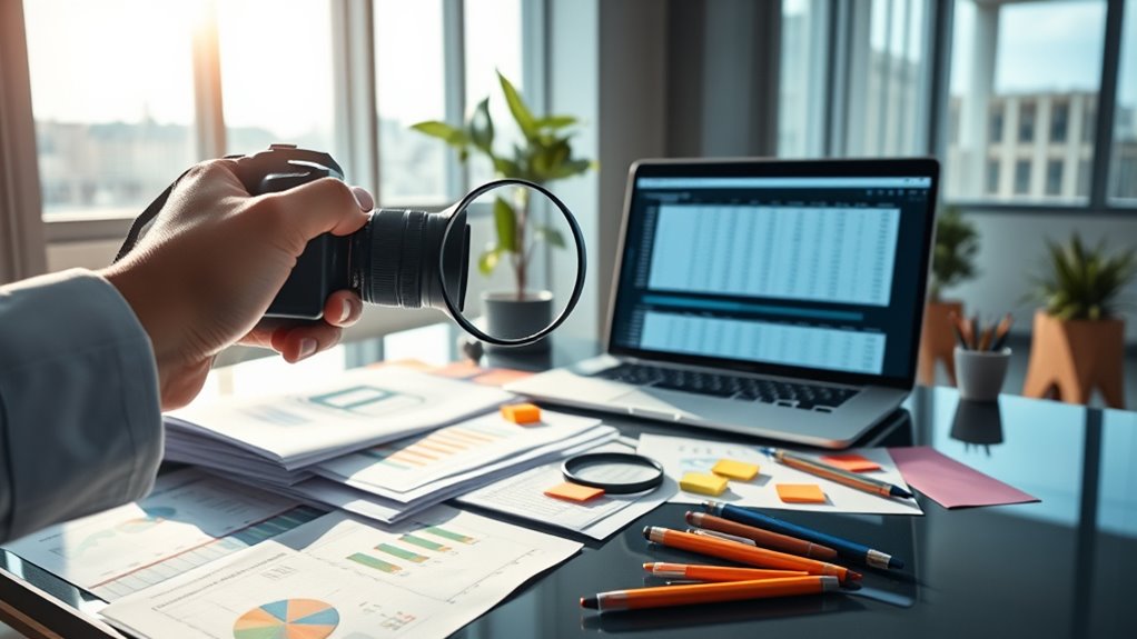 To identify research gaps before they cause problems, regularly evaluate your data quality and project alignment. Look out for signs like inconsistent data, outdated info, or low stakeholder feedback. Conduct systematic audits using stakeholder analysis and methodology reviews to spot weaknesses early. Prioritize issues based on potential impact and set clear action plans. Embedding these audits into your routine helps catch issues early, ensuring your research stays relevant and effective—keep exploring to discover how to keep your research on track.