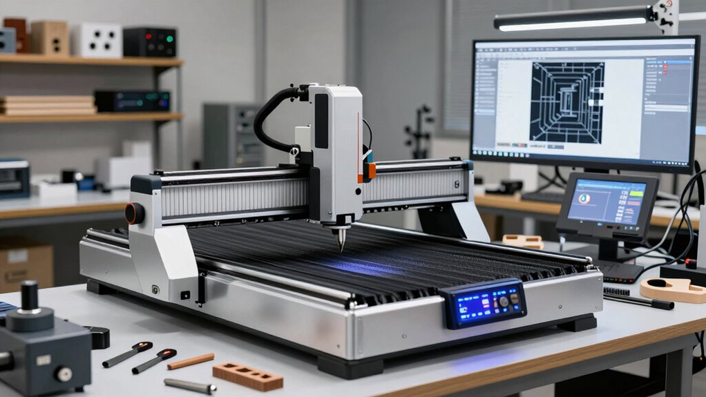 Choosing a CNC router with compatible software is essential for a smooth and efficient workflow, especially for entrepreneurs and inventors juggling multiple projects. I look for machines that work seamlessly with my existing design and CAD/CAM programs to save time and avoid frustration. It’s important that the software supports open-source options for flexibility or offers proprietary solutions tailored to my needs. I also verify that the firmware and control software integrate well with my operating system, whether Windows, Mac, or Linux. Features like real-time monitoring, troubleshooting tools, and easy file import/export are game-changers, helping me stay productive. Finally, I prioritize an intuitive user interface that matches my skill level, ensuring I can dive right into creating without unnecessary hurdles.