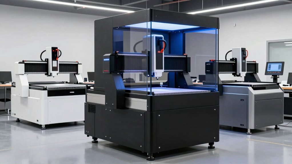 Absolutely, these models come with robust safety features that put your mind at ease. I’ve seen models with emergency stop buttons, safety interlocks, and dust collection systems that minimize hazards. Some even have automatic shut-offs if sensors detect issues. I know safety is a top priority for you, and these features guarantee you can work confidently, knowing your workspace stays secure while you focus on creating.