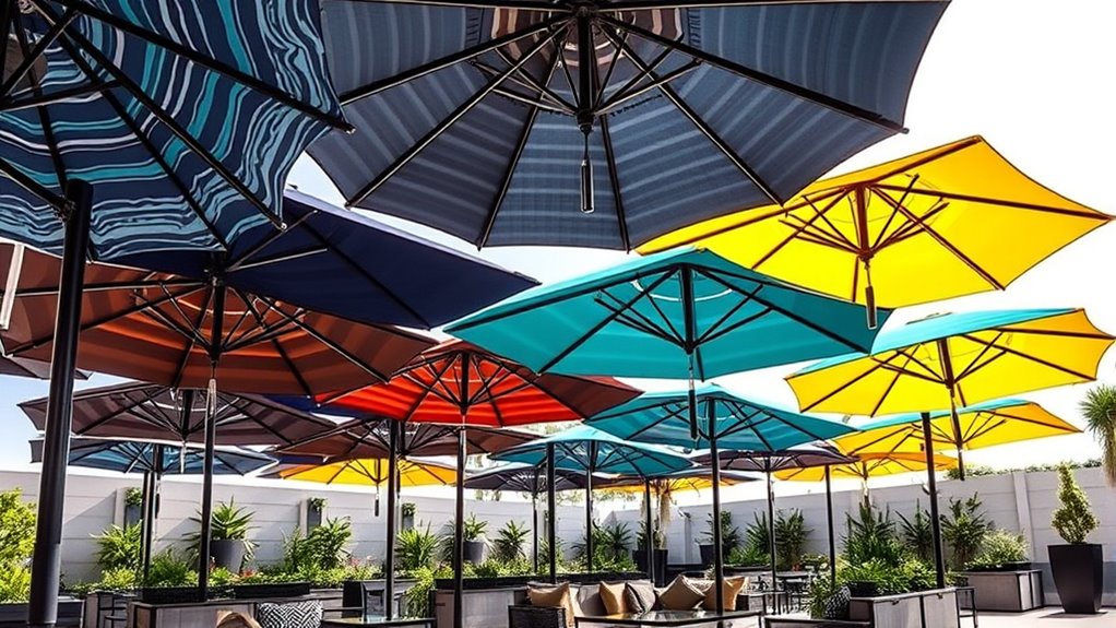 Looking for the best patio umbrellas in 2025 that blend style and shade? I’ve found top options with sturdy frames, UV-resistant fabrics, and stylish shapes like round and offset designs. Whether you want adjustable tilt, solar lighting, or large coverage, these umbrellas are perfect for your outdoor space. If you keep exploring, I’ll guide you through what makes each one a great choice to suit your needs.