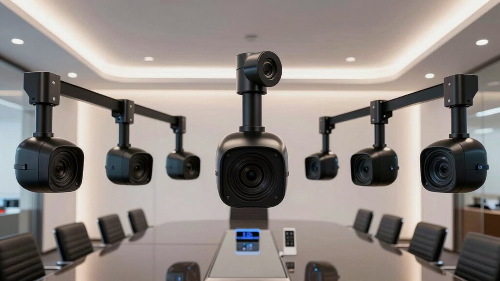 As I explore these top PTZ conference cameras, I envision seamless meetings where clarity and precision flow effortlessly—each camera a steady eye capturing every detail, every gesture. Whether it’s the AI-tracking elegance of Tenveo or the vibrant 4K zoom of TONGVEO, these devices transform our virtual spaces into dynamic, immersive environments. With the right remote in hand, I feel confident, connected, and ready to lead, knowing my meetings will always be sharp, smooth, and engaging.