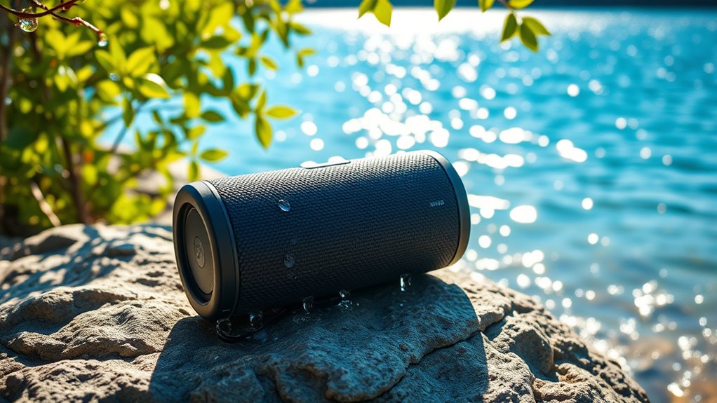 Imagine crystal-clear sound even at high volumes—that’s what the latest 2025 waterproof Bluetooth speakers deliver. They utilize advanced digital signal processing and adaptive EQ to optimize audio quality in real-time. Enhanced driver designs and hybrid active noise cancellation further improve clarity and bass. Plus, integrated AI tuning customizes sound profiles based on your environment, making every listening experience more immersive and dynamic.